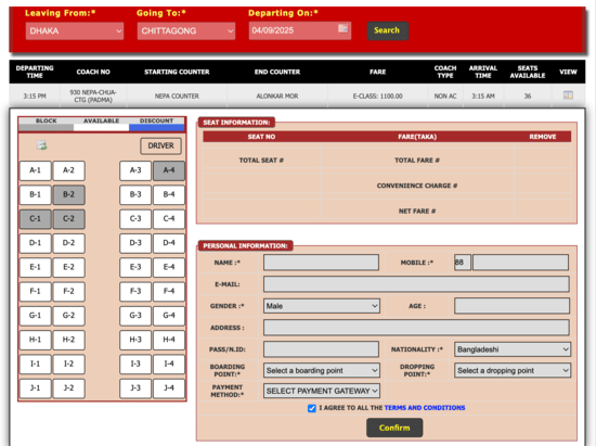 - বাস সিলেক্ট করুন: যেমন – 930 NEPA-CHUA-CTG (PADMA)